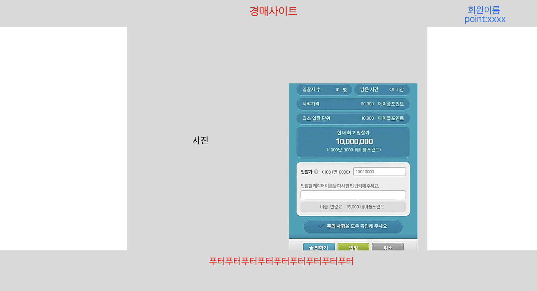 경매품의 상세 정보 및 입찰 페이지