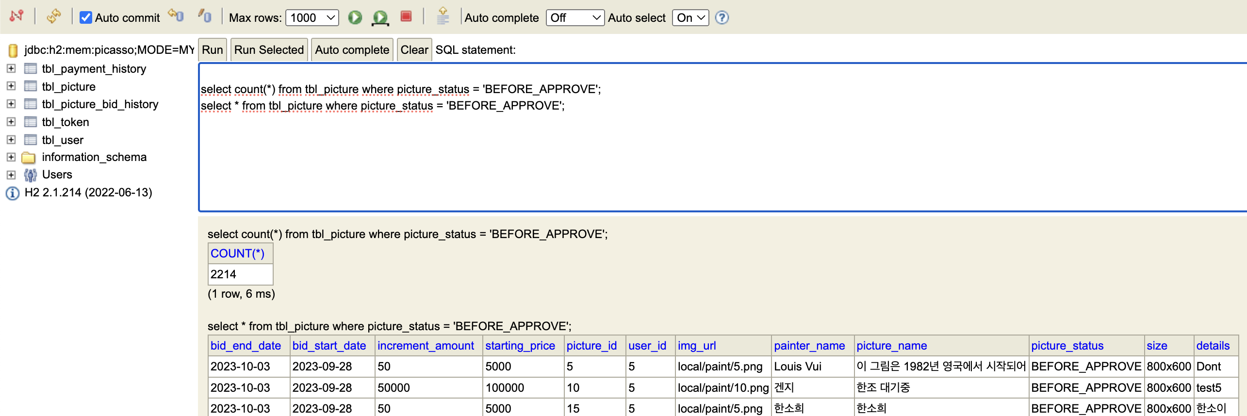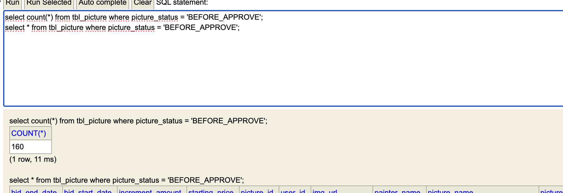 2200건을 h2에 삽입후 처리해본 결과 실제 시간이 0초가 걸리는 결과를 볼 수가 있다.. 헤헤...