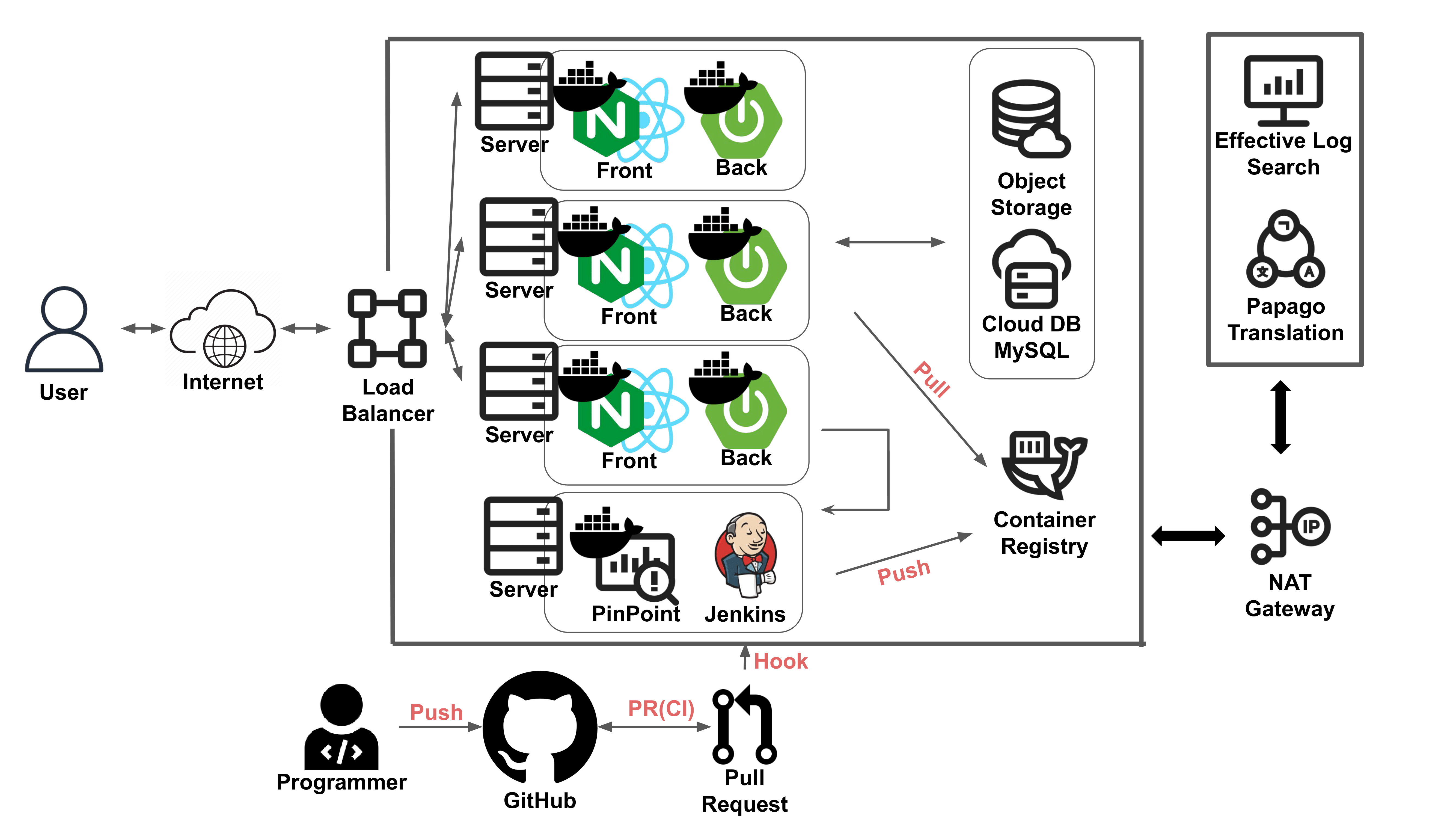 최종적으로 발표할 당시를 기준으로 완성이 된 아키텍처의 구조이다.