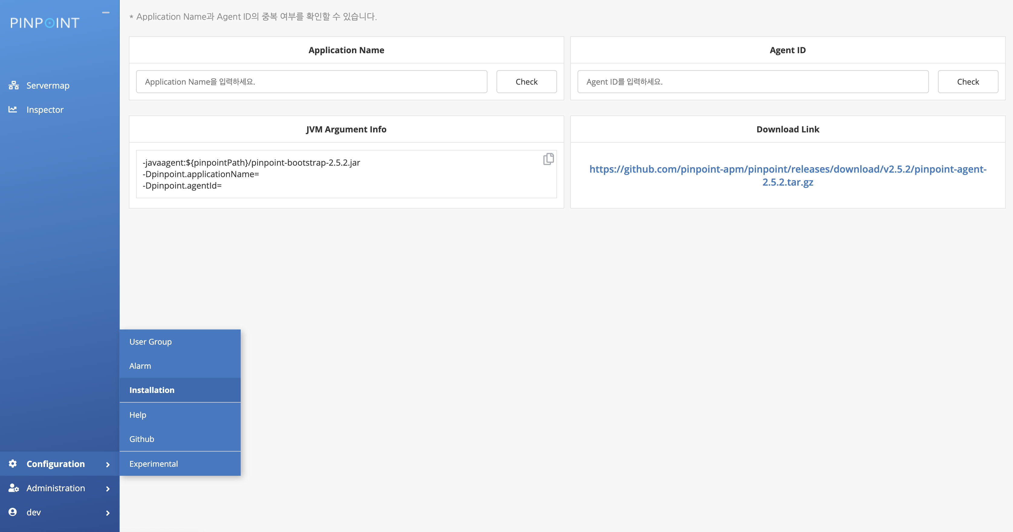여기에서 Download Link를 클릭하게 될 경우 PinPoint의 Agent를 Install이 가능하다.