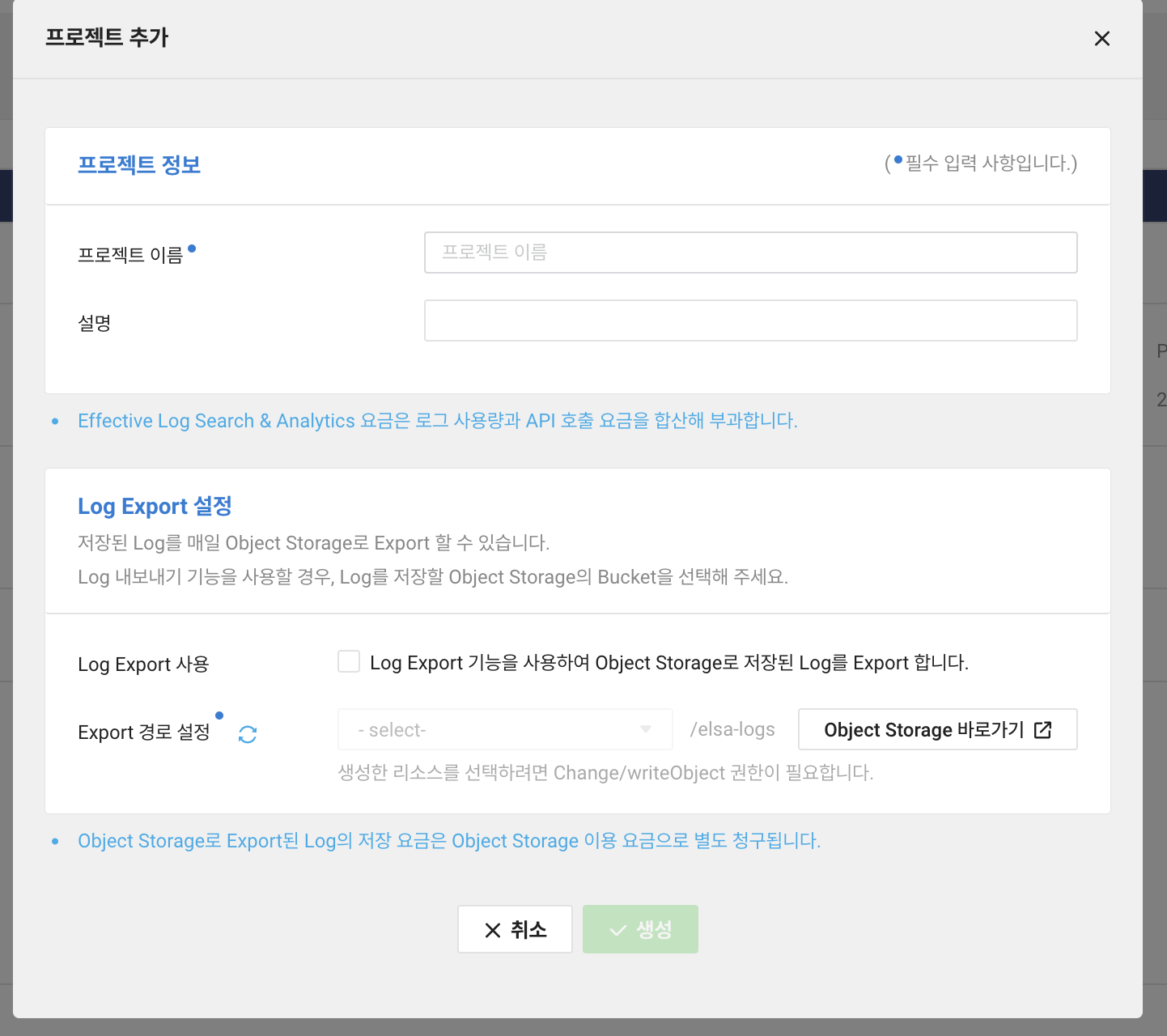 Repository생성을 누르고 다음의 정보를 기록하면 되며, 필자는 ObjectStorage로 Log저장까지 진행하였다.