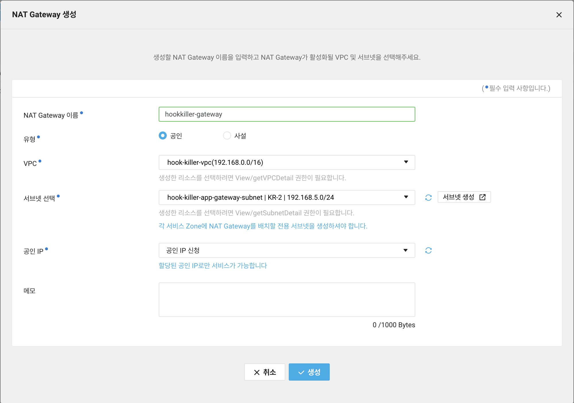 2. NAT Gateway생성
