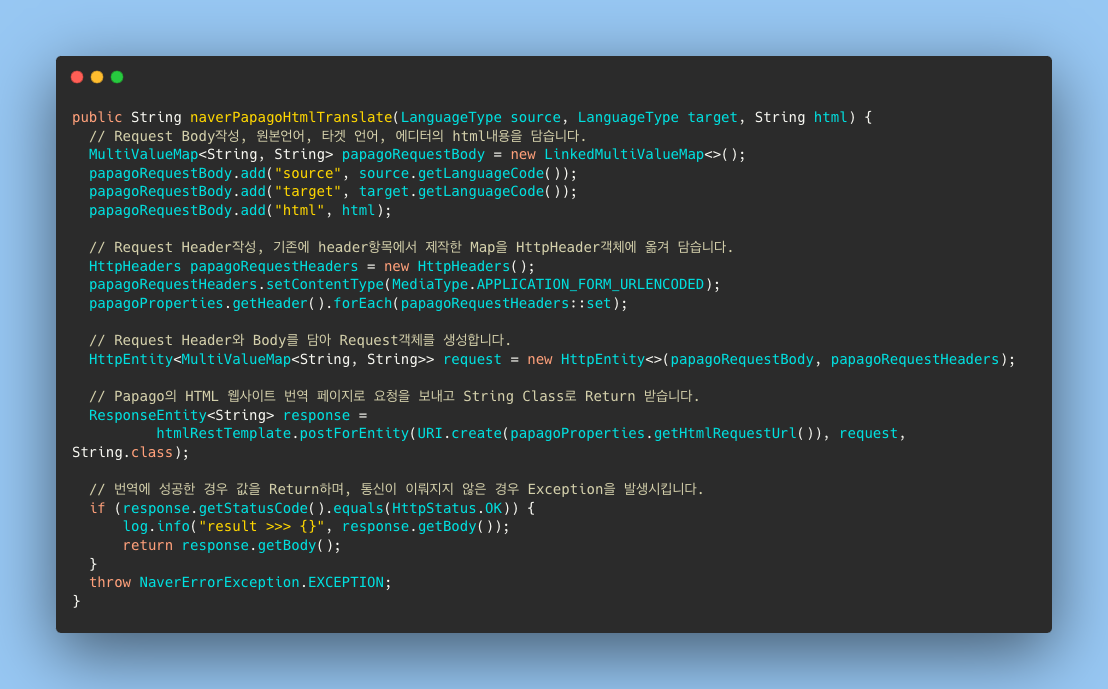 [OrientalUnity][Spring] NCP의 Papago Translation을 이용한 API번역 기능 구현 본문