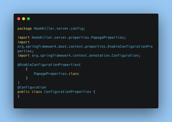 이후 위에서 생성한 PapagoProperties를 Bean으로 관리합니다.