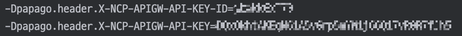 먼저 VMOption을 설정하며, 해당 API-KEY-ID와 API-KEY의 경우 인증인가의 Client ID와 Client Secret을 의미합니다.