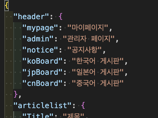 4개국어의 정보를 resources로 담고, 이후 i18n객체에 지정을 하였다.