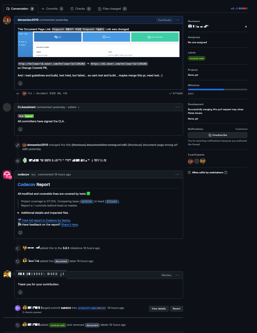 이후 PR로 컨트리뷰터가 되었고, 추후 3.0.1에 반영되어 나올 예정으로 보인다. (이게 진짜 되네;)