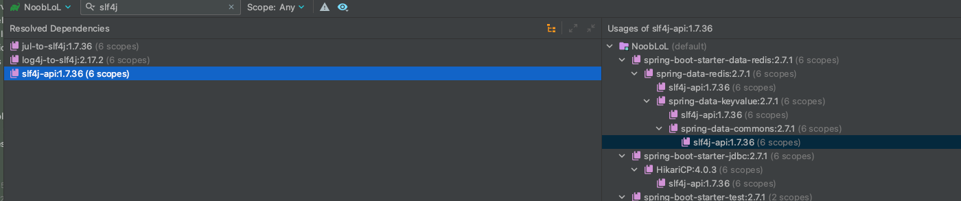 로그의 경우 SimpleLoggerFactory라는게 문제의 원인이 된 것 같아 일단 Gradle을 뒤져보기로 하였다.