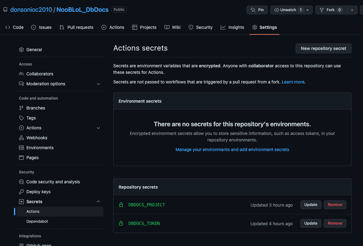 자동화 방법에 대해서는 DBDocs에서 튜토리얼에 소개된 대로 진행을 해보았다, 현재 진행했던 프로젝트역시 자동화를 Git Action으로 진행을 했었고 튜토리얼의 방법역시 Git Action을 활용하다 보니 바로 진행하게 되었다.