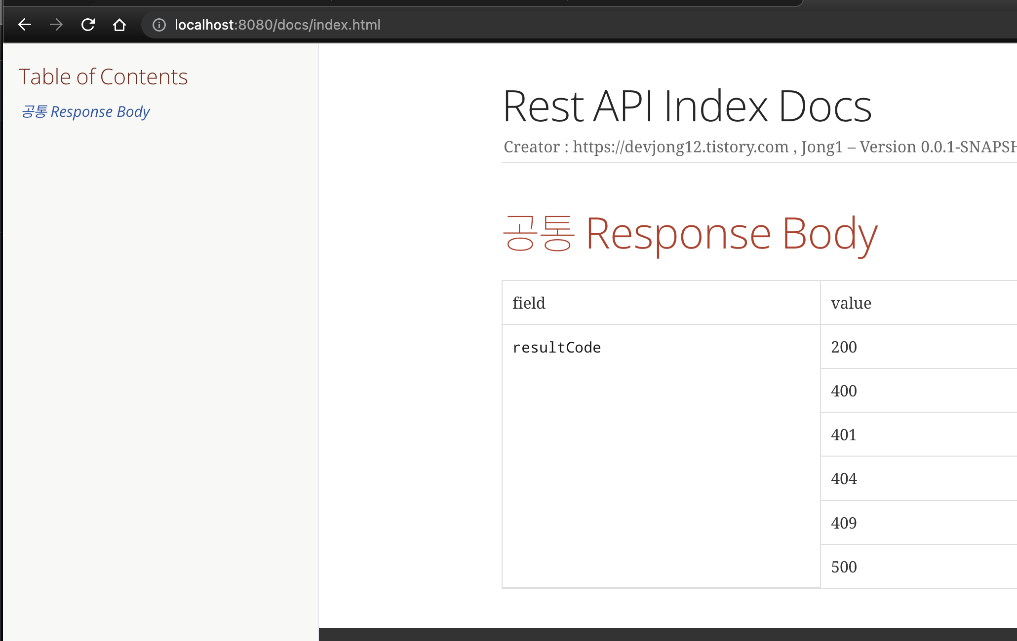 이후 다시 docs를 활용해 링크에 접속시 정상적으로 문서화를 진행한 html파일이 출력되고있었다.