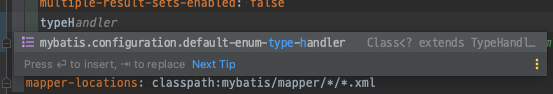 Intellij에서 자동완성으로 Configuration영역에 존재했고, TypeHandler를 상속받은 클래스 타입을 지정하고 있었다.