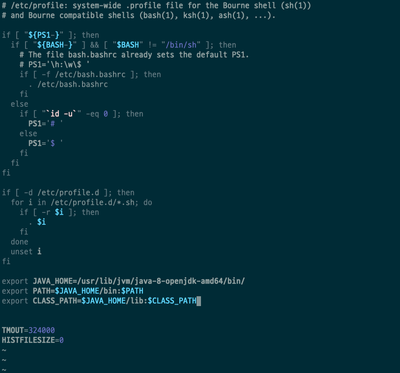 Vim을 통한 profile의 수정의 경우에는 최하단에 export를 직접 기록해주었다.