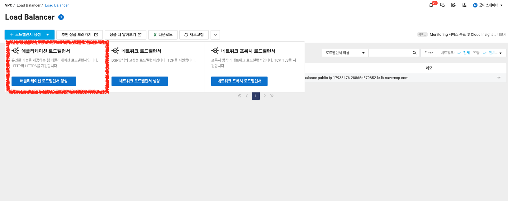 로드밸런서 생성으로 들어오면 다음의 화면이 출력된다.